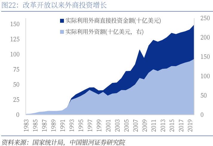 1978年改革开放以来,国家工作中心转移到经济建设上,金融发展的核心相应“从计划转向市场,从封闭走向开放”。在当时金融资源匮乏、经济和工业基础薄弱的基本国情下,吸引外资成为拉动中国经济起步的重要动力,以外资和金融机构准入为特征的金融开放通过利用国际金融资源,在一定程度上填补了国内经济建设的资金缺口。十一届三中全会以后,我国开始设立深圳等经济特区,聚焦发展劳动密集型出口加工业,相关事件构成当时金融开放“破冰”的主要背景。1979年3月,为了适应对外开放和国际金融业务发展的需要,国家恢复设立了中国银行,并设立国家外汇管理局以承接自中国人民银行分离出来的外汇业务。同年,日本输出入银行在北京设立了中国第一家外资银行代表处,中国银行业对外开放的序幕拉开。1984年11月,上海飞乐音响股份有限公司公开向社会发行了不偿还的股票。这是中国改革开放后第一张真正意义上的股票,标志着改革开放后的中国揭开了资本市场的神秘面纱。1986年国务院发布了《关于鼓励外商投资的规定》,在税收、信贷、进出口等方面提出了一系列鼓励外商投资的政策措施。这一阶段,我国利用外资开始起步,并在探索中不断扩大试点,1991年实际使用外资达到43.7亿美元。