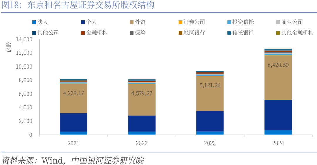 从资本市场来看,日本当前的股权结构中,外资占比相当高且逐年提升,反映出外资对日本资本市场的影响力不断增强。日本资本市场的金融开放过程表明,开放步伐应与经济发展阶段和金融体系的成熟度相匹配。同时,需要合理运用制度安排,适当延缓高风险领域的开放并保持战略自主性。一是资本市场的开放应与经济发展阶段和国内金融体系的成熟度相匹配。日本虽然早在1960年代具备了金融开放的基础(加入IMF第八条款),但其金融市场的改革并未急于推进。直至1980年代末,经济逐步进入稳定增长阶段,才加快了对外资本市场的开放。相似地,中国当前也面临着经济转型和金融市场高水平开放的双重任务,因此在资本市场的对外开放上,应结合国内金融体系的成熟程度,稳步推进,避免过快开放引发系统性风险。二是开放过程中应合理运用制度安排,延缓一些高风险领域的开放。日本在1980年代虽然允许外资证券公司成为东京证券交易所会员,但通过设置会员数量上限等方式,变相推迟了外资进入的实际进程,直到本土金融机构具备了一定的国际竞争力后才全面放开。这种策略保证了国内金融市场的平稳过渡,并避免了过早放开市场所带来的风险。三是开放须保持战略自主性,避免外部压力引发过度改革。日本在1980年代的资本市场开放,在很大程度上是受美国等外部压力的推动。这一加速开放的过程缺乏与监管体制的同步完善,最终导致了1990年代的金融危机。