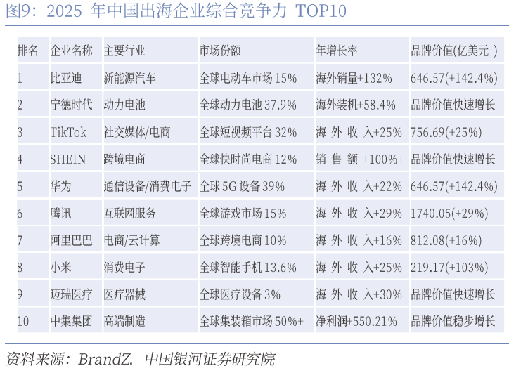 第三,健全跨境金融服务体系有助于服务企业跨境融资,助力新质生产力海外布局及更高水平开放型经济新体制建设。跨境金融服务体系是指一国金融机构为满足实体经济跨境经贸需求而构建的综合性金融服务体系,涵盖跨境支付、投融资等多个领域。中央金融工作会议指出“支持国有大型金融机构做优做强”。在中国深度嵌入全球产业体系,并加快推进对外开放的历史窗口期,扩展海外布局,提高跨境业务能力是金融业提高经营能力、扩大业务范畴的一条重要途径。历次五年规划多次提及金融跨境经营,“十二五”规划指出“逐步发展我国大型跨国公司和跨国金融机构,提高国际化经营水平”;“十三五”指出金融机构要“加强海外网点布局,完善全球服务网络”;“十四五”强调“推动金融基础设施互联互通,支持多边和各国金融机构共同参与投融资”。近年来,在全球产业链重塑过程中,中企出海热潮兴起,电动汽车、消费电子、矿产基建类产业成为主要参与者,而金融作为服务实体经济的关键助力,在海外布局进程中存在明显的滞后和脱节。
