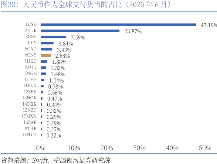 第二,构建区域货币稳定机制,扩大本币结算规模、完善货币互换网络等措施推动人民币国际化进程。在当前全球金融格局深刻变革的背景下,发展中经济体对美元主导的国际货币体系的高度依赖问题日益凸显。随着美元信用体系波动加剧,新兴市场国家正面临着资本流动剧烈波动、外债风险上升、汇率不稳定等多重挑战。这种结构性依赖不仅制约了发展中国家的货币政策独立性,更使其在全球经济周期调整中处于被动地位。因此,推动国际货币体系多元化改革,提升新兴经济体在全球金融治理中的制度性话语权,已成为维护全球经济金融稳定的关键议题。建议依托自贸协议框架,加快完善本币互换、本币结算机制,同时加快完善人民币跨境支付系统(CIPS)功能,推动更多新兴市场货币接入,实现多边本币结算体系的良性循环。