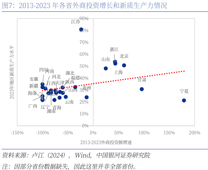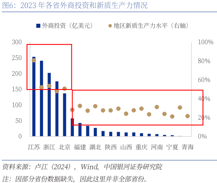 新质生产力的三大要素中,技术革命性突破是核心,要素创新性配置是内涵,产业升级是表现形式。首先,从核心要素来看,技术突破具有高投入、高风险与周期长等显著特征,而外资创投机构往往具有强大的国际资本支持和广泛的业务布局,能够有效支持研发活动的开展。一方面,国际资本能够为创业企业提供大量的资金,满足企业在技术研发不同阶段的资金需求。另一方面,发达国家多处于技术前沿,这些外资的流入通常伴随先进技术、高质量中间品及系统化的技术评估与风险管理体系,能够通过知识溢出效应强化本地技术吸收与再创新能力,为技术革命性突破提供一定的支持 。例如IDG资本在中国香港、北京、上海等一线城市设有办公室,还在美国波士顿、硅谷、旧金山、印度、越南、韩国等地设有分支机构,能为企业提供全球化的技术和人才资源。