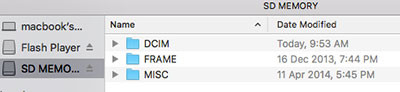 在 Finder 中找到 SD 卡,拖拽文件到目标文件夹。