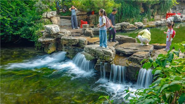 趵突泉是大地睁开的第三只眼,三股清泉昼夜吟诵着“咕嘟咕嘟”的韵脚。观澜亭畔,锦鲤摆尾游过石刻的《如梦令》,孩子蹲下身,与鱼群对视:“你们也读过‘争渡,争渡’吗?”文创雪糕在舌尖融化,甜香里藏着荷花的私语。接一瓶泉水,看阳光穿透水体,折射出七色光晕——原来清泉,是春天写给大地的情书。